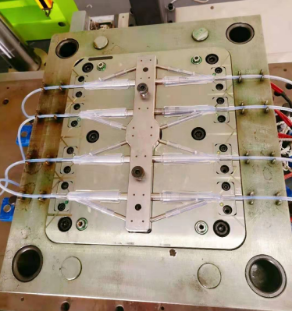 不仅如此,广州天沅设计的硅胶导尿管模具一模多用,一套模具可以共用相邻3个型号的硅胶导尿管。每个型号开两套镶件,一共6套镶件,可以实现模具通用,只需简单跟换镶件即可满足立式双滑板液态硅胶机生产要求,不但减少了模具开模费用,也提升了生产效能。